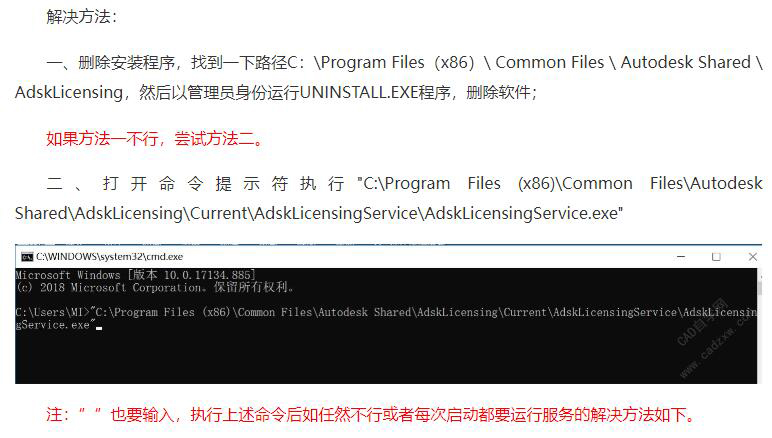 (找到AdskLicensingService.exe右击以管理员身份运行,不要关闭窗口,再重新安装CAD)
