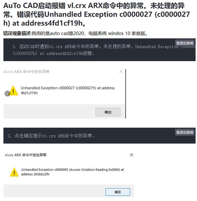 AuTo CAD启动报错 vl.crx ARX命令中的异常。