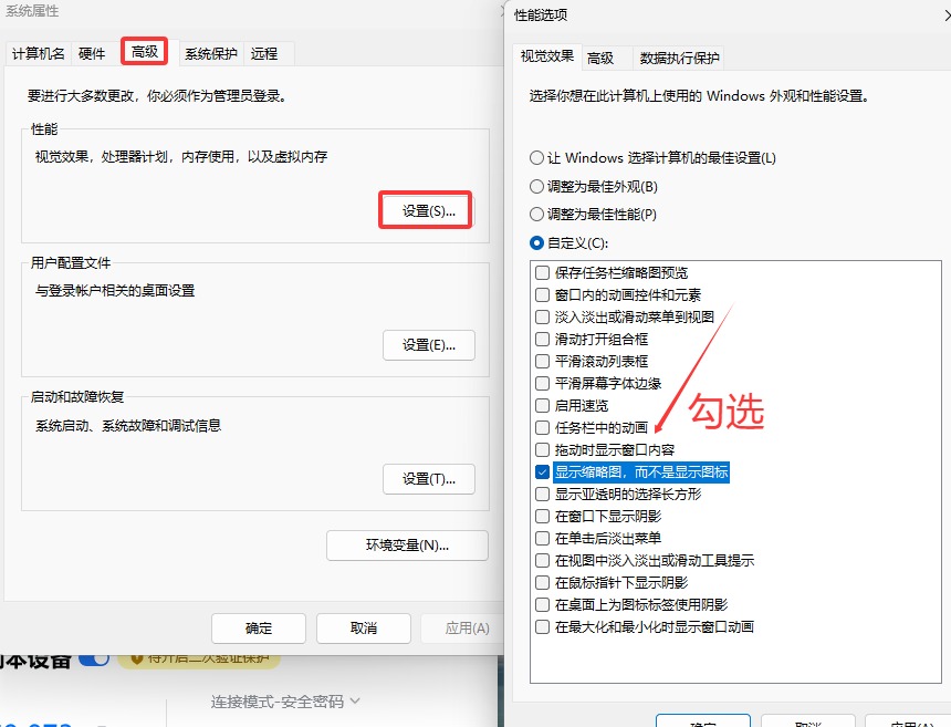 “在资源管理器中显示缩略图”打√