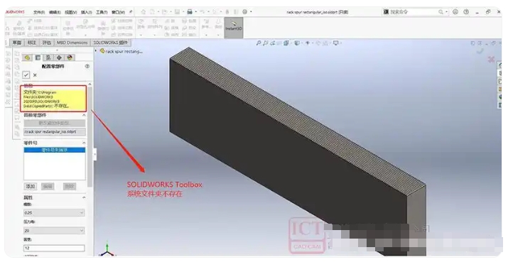 Q:当使用Toolbox配置一个标准件时,出现以下截图错误(Toolbox系统文件夹不存在):