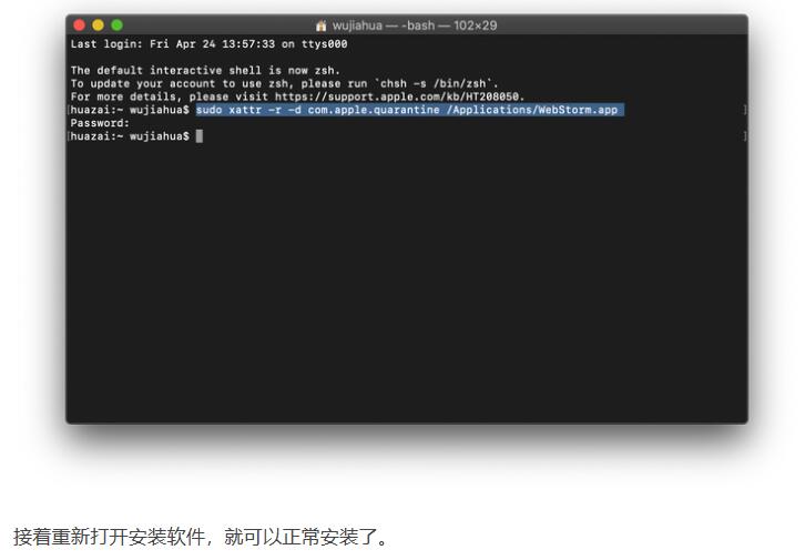 sudo xattr -r -d com.apple.quarantine /Applications/WebStrom.app