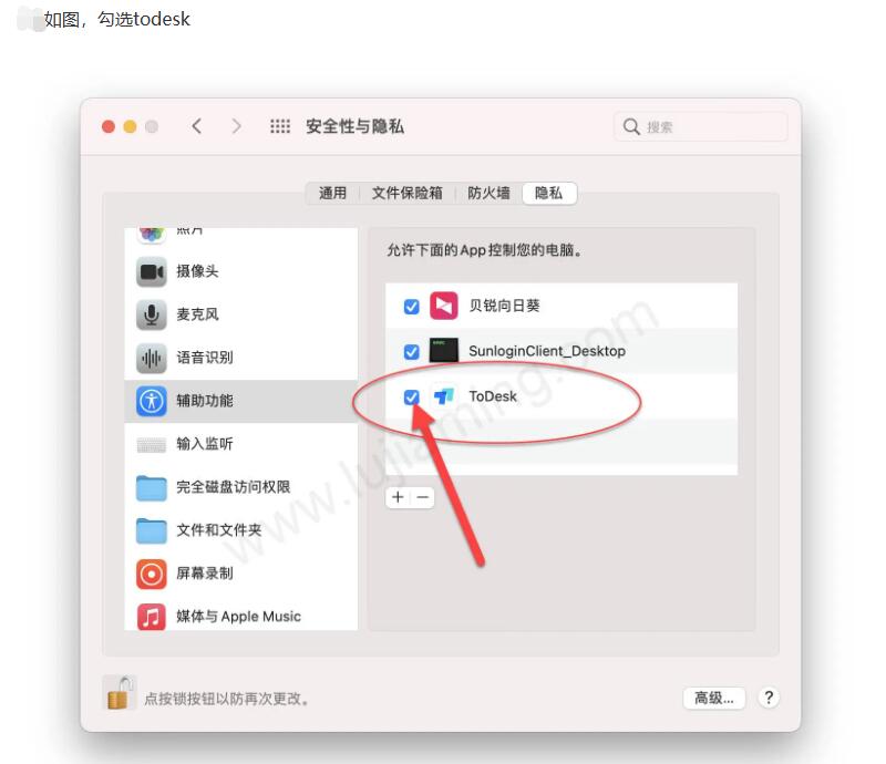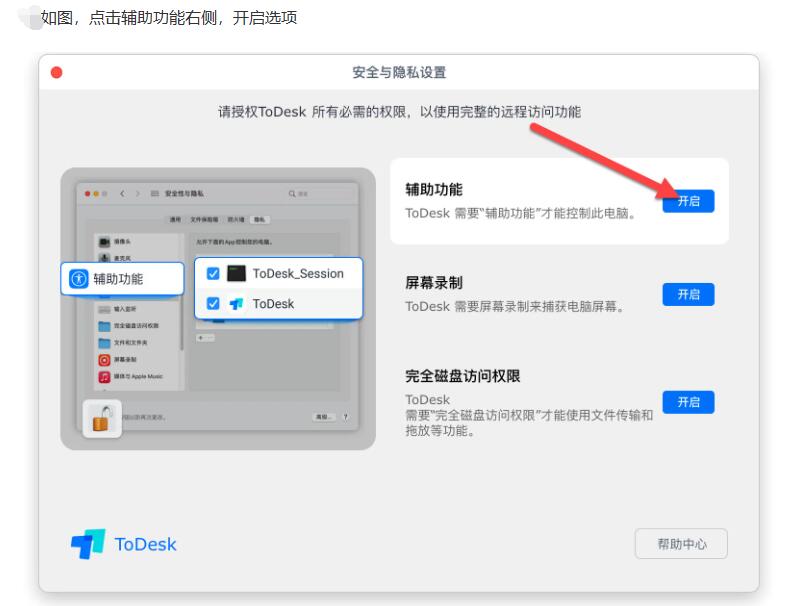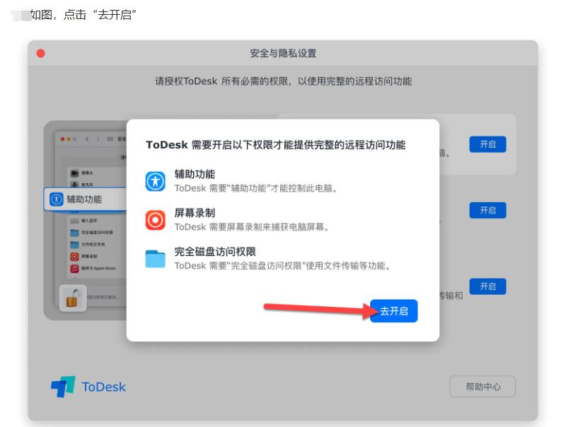苹果电脑设置todesk远程工具权限