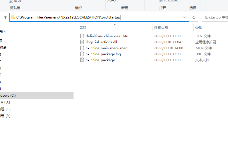 1.打开NX2212UG软件安装路径,其路径如下C:\Program Files\Siemens\NX2212\LOCALIZATION\prc\startup;