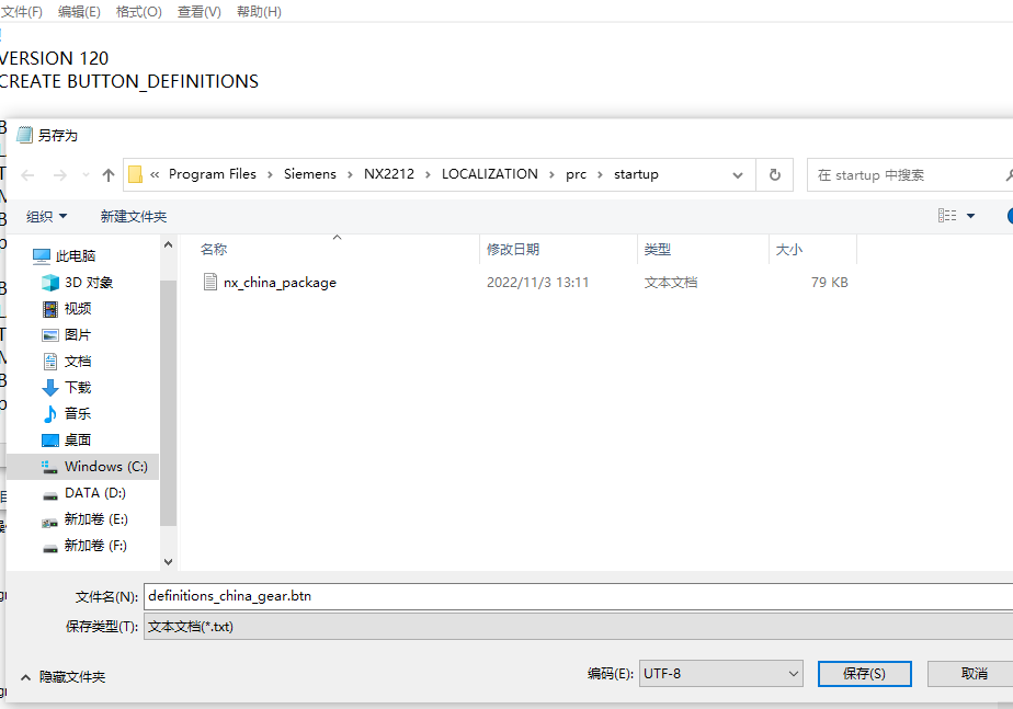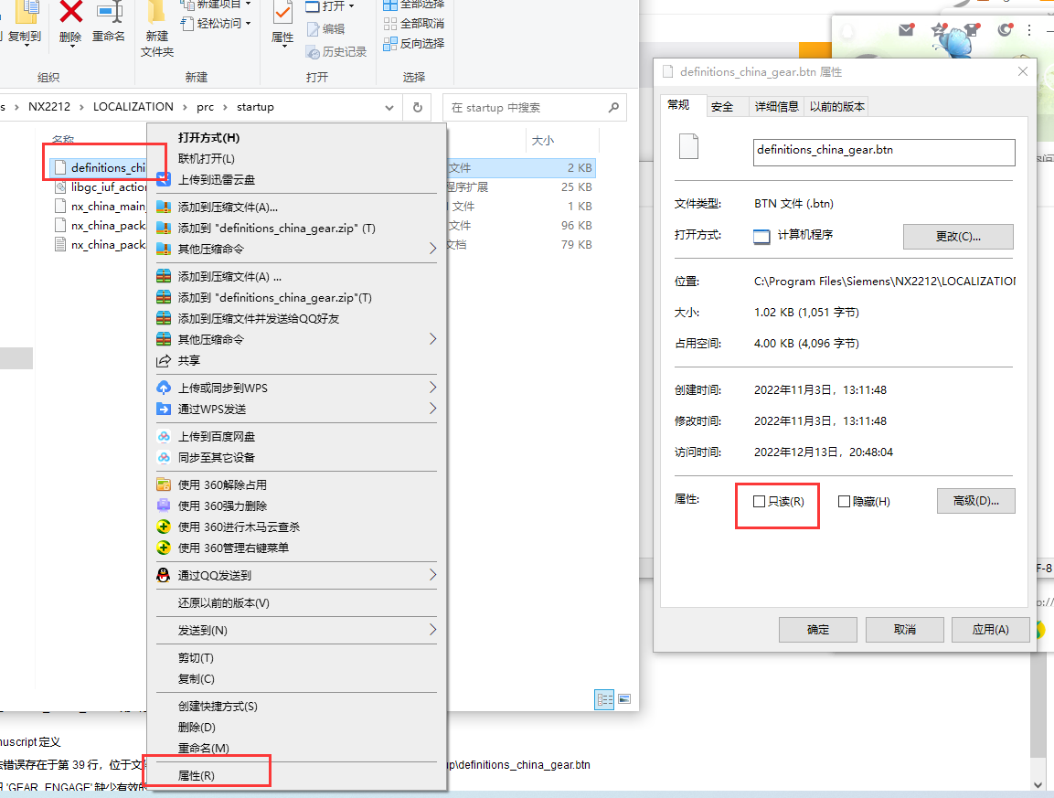 6.在definitions_china_gear.btn文件上右键,-属性-把只读钩去掉,然后再保存就可以了;